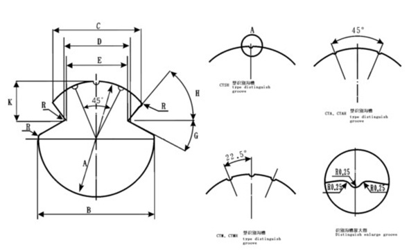 A-截面直徑(高度)Section altitude; K-頭部高度 Head altitude;