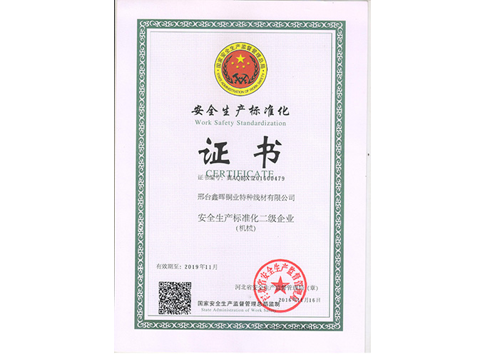 安全生產標準化證書
